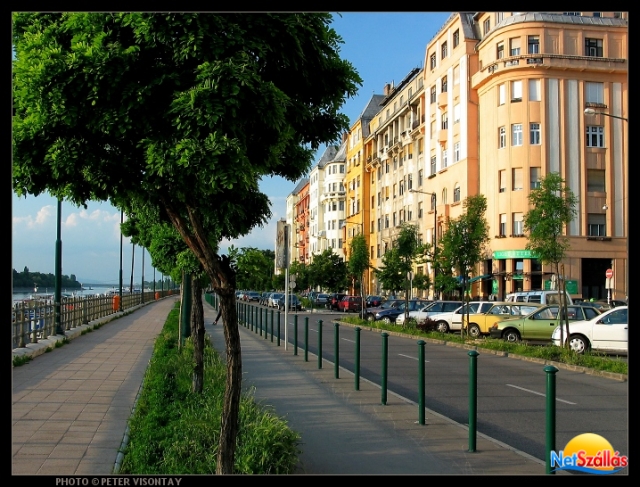A lakás pontosan a belvárosi Duna-parton, a Margit híd közelében található. Nagyon barátságos, napos, a hatalmas, déli tájolású teraszról szép kilátással a Dunára, a Margit-szigetre és a budai hegyekre. Egy elegáns szobát kényelmes fekhelyekkel, melyekből a televízió is könnyen nézhető, egy tágas, elegáns fürdőszobát, nagy káddal, törülközőkkel és különböző kozmetikai termékekkel felszerelten és egy mindennel ellátott kis konyhát kínálunk leendő vendégeinknek. A lakásban kábeltelevízió található és WiFi is elérhető.